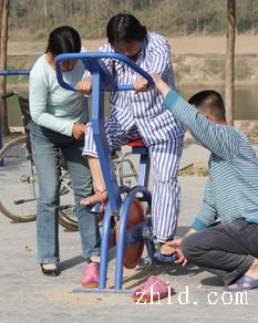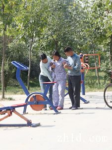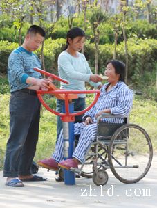 10月22日,我在川匯區(qū)濱河公園無意中拍攝到了一組鏡頭。一對(duì)兒女用輪椅推著半身癱瘓的老人,不厭其煩地幫老人使用健身器材,他們不停地蹲下、站起,又蹲下,配合著老人僵硬的動(dòng)作。