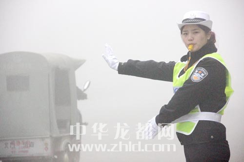 交警在霧中執(zhí)勤