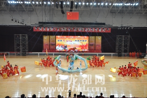????開(kāi)幕式結(jié)束后,鄧凱、蔣篤運(yùn)、張廣智、靳綏東、宋存杰等省市領(lǐng)導(dǎo)同現(xiàn)場(chǎng)5000余名觀眾共同觀看了開(kāi)幕式文體表演。文體表演分為龍騰中原、周口印象、夕陽(yáng)燦爛、共筑夢(mèng)想4個(gè)樂(lè)章。