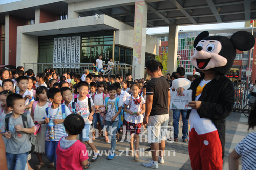 ????9月1日17時(shí)許,在慶豐路周口市文昌小學(xué)門前,家長(zhǎng)們看到周口晚報(bào)工作人員在派發(fā)禮品,紛紛掏出手機(jī),掃描二維碼關(guān)注周口晚報(bào)微信公眾號(hào)(圖一)。17時(shí)40分,放學(xué)的孩子們排著整齊的隊(duì)伍陸續(xù)走出校門。校門外,由周口晚報(bào)記者扮演的米老鼠和唐老鴨“大玩偶”吸引了孩子們的目光(圖二)。孩子們興奮地同“大玩偶”玩耍起來(lái)。有玩的,還能免費(fèi)領(lǐng)取學(xué)習(xí)用品,孩子們大聲召喚家長(zhǎng)加入到掃描二維碼關(guān)注周口晚報(bào)微信公眾號(hào)的“大軍”中來(lái)。市民趙先生說(shuō):“我是咱晚報(bào)的忠實(shí)讀者,正準(zhǔn)備訂閱明年的報(bào)紙,還打算讓孩子參加晚報(bào)組織的小記者活動(dòng)呢!”