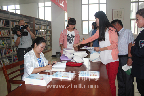 ????昨日16時(shí),在市圖書館綜合閱覽室,市文化局曹克宏、市圖書館李佳和本報(bào)田維國、董雪丹等各單位相關(guān)負(fù)責(zé)人參加了捐贈(zèng)儀式,曹克宏向柳韻頒發(fā)了愛心捐贈(zèng)榮譽(yù)證書。捐贈(zèng)儀式結(jié)束后,柳韻在現(xiàn)場舉行了簽字贈(zèng)書活動(dòng)(如圖)。面對讀者的熱情,柳韻一一簽字贈(zèng)書,現(xiàn)場又簽贈(zèng)系列圖書近百冊。