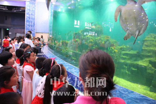 ????7月2日,在周口市義工協(xié)會(huì)開展的“繽紛夏日 快樂童年”公益活動(dòng)中,商水黃寨半坡店小學(xué)的30名留守兒童與周口市區(qū)的30名兒童結(jié)成友誼對子。圖為當(dāng)日孩子們一起參觀海洋館。晚報(bào)記者 張燕 攝