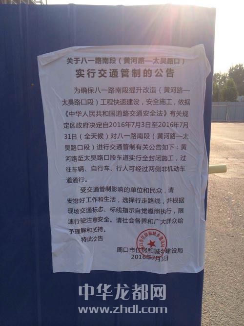 ????當(dāng)日下午,周口晚報記者在八一大道南段看到,原火車站鐵道口至太昊路路段的雙向機動車道已全線封閉,“過往車輛請繞行”的交通警示牌也已豎立在路口,幾輛施工車輛正在現(xiàn)場緊張忙碌地備料、開挖路面。