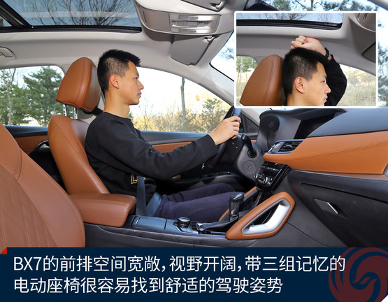 BX7是一款同時擁有5座、6座和7座布局的SUV車型,這款長度超過4.7米的SUV的確有能力在行李廂布置第三排座椅。不過這次我們試駕的車型仍是五座配置,對于這樣尺寸級別的SUV前后排空間自然都不是問題,相當(dāng)寬闊而且乘坐感非常舒服。旗艦版的配置亦相當(dāng)豐富,三溫區(qū)自動空調(diào)和前后排座椅加熱,以及同級別堪稱無敵的超大全景天窗,在配置方面很有吸引力,而再一次綜合其價格來看,明顯優(yōu)于同級別平均水平的標(biāo)準(zhǔn)配置再一次詮釋了“觸手可及的豪華”這一產(chǎn)品理念。