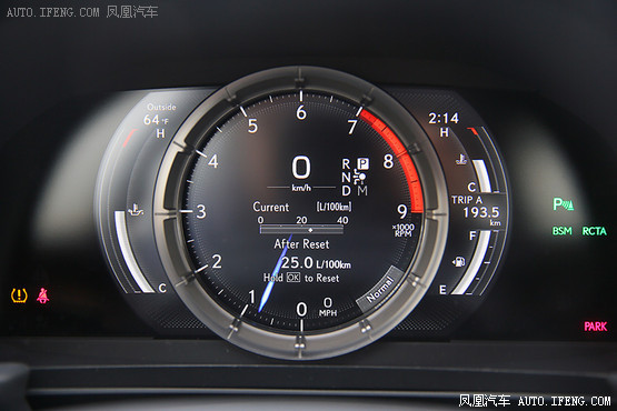 全液晶儀表盤繼承了超級跑車LFA的樣式,中間的金屬物理圓環(huán)可以向右側(cè)移動,從何使左側(cè)顯示更多的車輛信息。論炫酷程度,這塊液晶儀表絕對是所有品牌最棒的,不過實用度差了點,不如奧迪的液晶儀表。