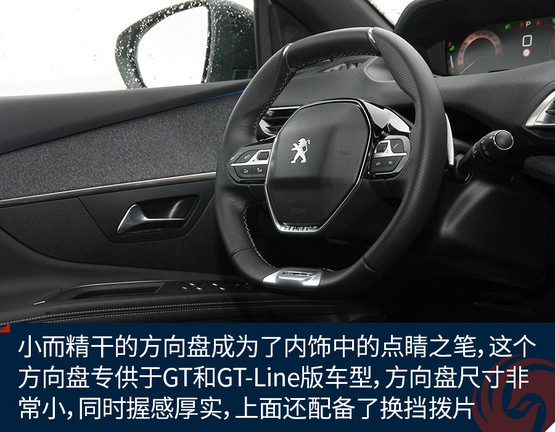 小而精干的方向盤成為了內(nèi)飾中的點(diǎn)睛之筆,這個(gè)方向盤專供于GT和GT-Line版車型,方向盤尺寸非常小,同時(shí)握感厚實(shí),上面還配備了換擋撥片,單看方向盤根本想不到這出于是一款7座中型SUV。