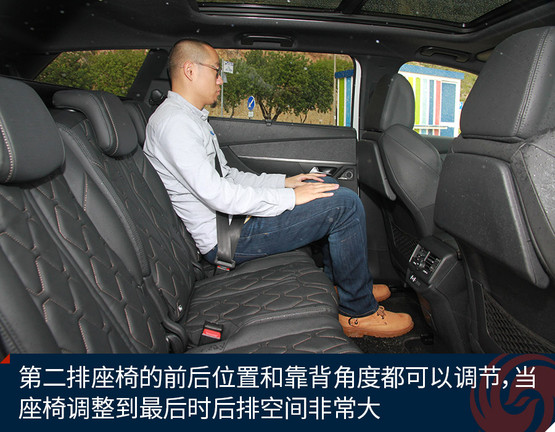 第二排座椅的前后位置和靠背角度都可以調(diào)節(jié),當(dāng)座椅調(diào)整到最后時(shí)后排空間非常大,同時(shí)標(biāo)致5008還為第二排乘客提供了獨(dú)立空調(diào)、小桌板和車頂上的全景天窗,所以當(dāng)?shù)谌挪恍枰藭r(shí),標(biāo)致5008的第二排是一個(gè)乘客休息娛樂的好地方。