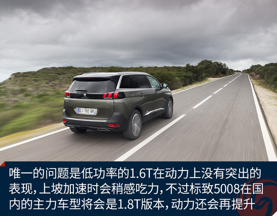 最后我們來說一說標(biāo)致5008的駕駛感受。首先是動(dòng)力配備情況,在歐洲市場(chǎng),標(biāo)致5008提供了1.2T和1.6T兩款汽油發(fā)動(dòng)機(jī)和2.0T柴油發(fā)動(dòng)機(jī),來到國內(nèi)后將會(huì)提供1.6T和1.8T兩款汽油發(fā)動(dòng)機(jī),并匹配6速手自一體變速器。