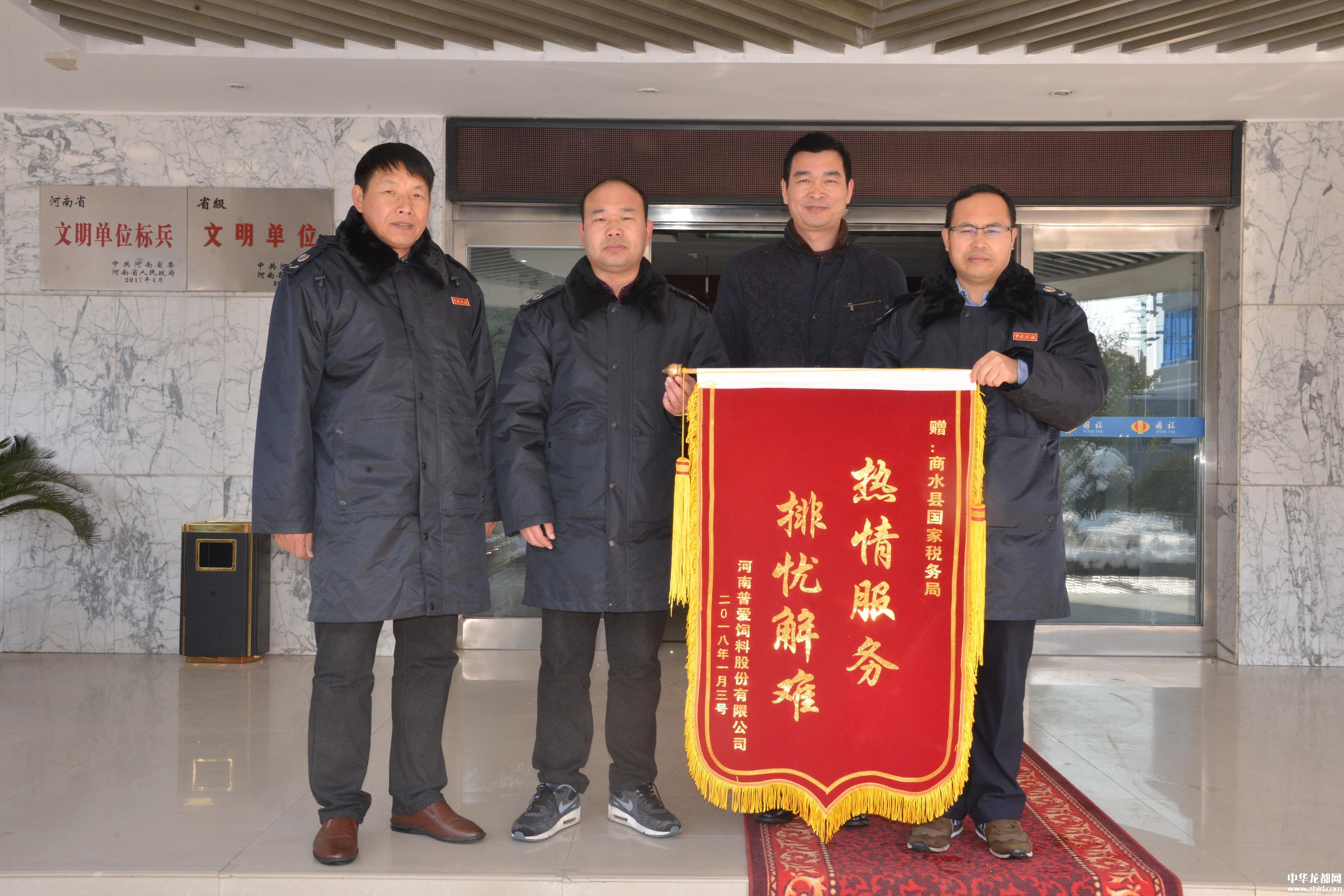 中華龍都網(wǎng)訊(周口報業(yè)全媒體記者 付永奇  通訊員 李媛媛)1月8日,河南普愛飼料股份有限公司的財務(wù)人員將一面印有“熱情服務(wù)排憂解難”的錦旗送到商水縣國稅局,感謝辦稅服務(wù)廳工作人員急納稅人之所急、想納稅人之所想,為他們提供細致、周到、高效的辦稅服務(wù)。
