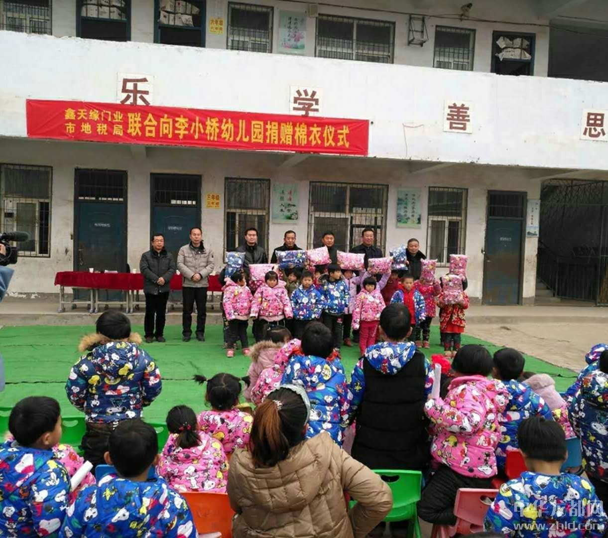 中華龍都網(wǎng)訊(周口報業(yè)全媒體記者 馬治衛(wèi) 通訊員 蘇童)一件衣物一份溫暖,一顆愛心一份感動。1月22日下午,市地稅局駐村工作隊聯(lián)合愛心企業(yè)鑫天緣門業(yè)開展了向太康縣王集鄉(xiāng)李小橋幼兒園“送溫暖、獻愛心”棉衣捐贈活動,為100多名孩子送去了價值5100元的御寒冬衣。市地稅局、太康縣教體局、王集鄉(xiāng)黨委政府有關(guān)負責(zé)同志及部分學(xué)生家長和全校師生共400余人參加了此次捐贈儀式。