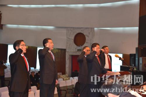 白建偉、王勝強、翟勝遠、宋玉民、徐永豪在王銀河領誓下公開向憲法作就職宣誓。