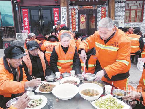 3日2日是正月十五,商水縣百名環(huán)衛(wèi)工人中午大聚餐,吃上熱氣騰騰的菜肴和香甜可口的元宵。