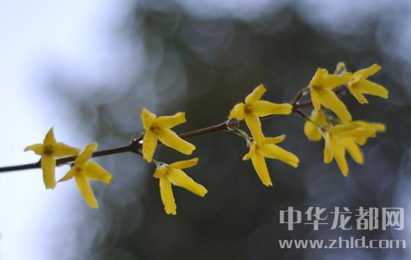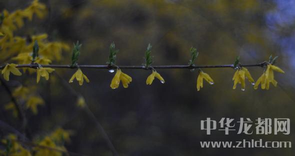 中華龍都網(wǎng)訊(周口報業(yè)全媒體記者 朱海龍 文/圖 )迎春花和連翹有些相似,花兒小巧,成串地分布在花枝上,花兒金黃,雨水的潤澤使她顯得分外嬌艷,大有臨風而綻的仙姿靈骨。
