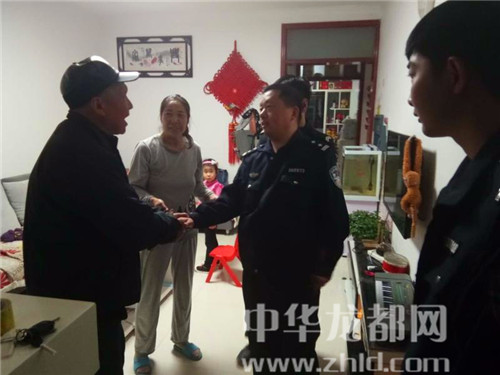 民警一邊安撫老人情緒,一邊進(jìn)一步與老人溝通,得知其子名叫趙冬明,在周口市開發(fā)區(qū)地稅局工作。老人沒有記住家人電話、無法聯(lián)系,民警于是開車將老人送至周口市開發(fā)區(qū)地稅局家屬院,經(jīng)多方打聽終于找到老人兒子趙冬明家,將老人安全送到家中。老人激動的熱淚盈眶,并向民警表示感激。
