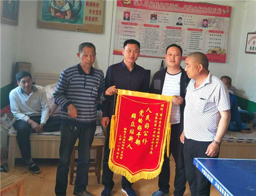 中華龍都網(wǎng)訊(周口報(bào)業(yè)全媒體記者 付永奇 通訊員 胡書(shū)廣)4月19日,商水縣張明鄉(xiāng)閆莊行政村貧困戶(hù)王改霞家人將一面寫(xiě)有“人民好公仆,黨的好干部,群眾貼心人”的錦旗送到閆莊行政村村室,感謝商水縣交通局派出的駐村“第一書(shū)記”王秋生長(zhǎng)期以來(lái)對(duì)她們一家的關(guān)心和幫助。
