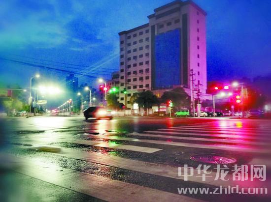 昨日凌晨,小雨暫歇,一輛汽車駛過濕漉漉的路面。