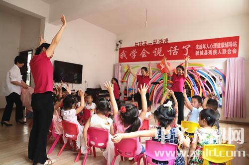 家長(zhǎng)如此開(kāi)朗,孩子們的世界肯定會(huì)更加陽(yáng)光。記者隨著鄲城縣殘聯(lián)理事長(zhǎng)楊瑞林和聾兒語(yǔ)訓(xùn)中心主任邵莉娜來(lái)到了二樓聾兒語(yǔ)訓(xùn)學(xué)習(xí)班?!拔覍W(xué)會(huì)說(shuō)話了”,大愛(ài)至簡(jiǎn),教學(xué)班里僅此一句標(biāo)語(yǔ),墻上是一面鏡子,鏡子上貼滿了老師和孩子們一起做的彩氣球,旁邊是一架鋼琴,4位語(yǔ)訓(xùn)老師正在張著大口(說(shuō)話標(biāo)準(zhǔn)口形)、動(dòng)作夸張地給孩子上聽(tīng)力課,老師邊彈琴,邊做手指舞、跳少兒舞,孩子們慢慢聽(tīng)、慢慢模仿、慢慢張口咿呀跟著唱……
