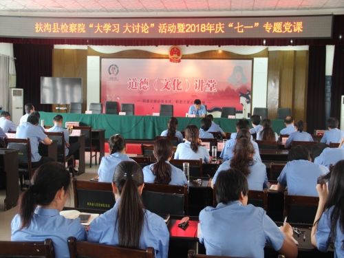 中華龍都網(wǎng)訊(周口報業(yè)全媒體記者 竇娜 通訊員 葛清華 趙宏偉)為迎接建黨97周年,繼承和發(fā)揚黨的優(yōu)良傳統(tǒng),發(fā)揮黨的核心引領(lǐng)作用,進一步增強黨組織的凝聚力和戰(zhàn)斗力,進一步提升檢察干警的黨性觀念和宗旨意識,激發(fā)檢察干警干事創(chuàng)業(yè)和爭先創(chuàng)優(yōu)的熱情,近日,扶溝縣人民檢察院舉辦《不忘初心,牢記使命,做一名新時代合格的檢察干警》專題黨課。