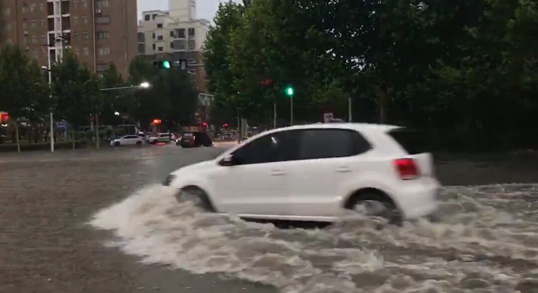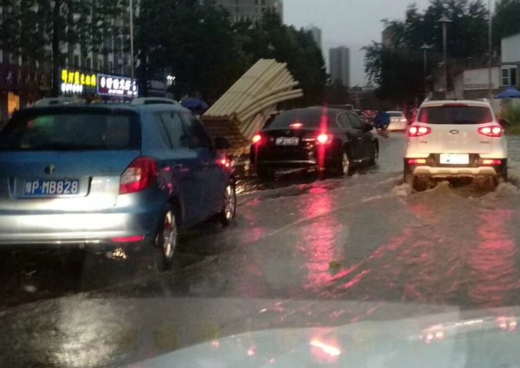 記者在周口市東新區(qū)觀察到,降水從26日下午4點(diǎn)多開始,一直持續(xù)到夜間,其間伴有雷電和大風(fēng)。26日傍晚6時(shí)許,記者在周口市文昌大道看到,積水嚴(yán)重的地方已經(jīng)淹沒了自行車大半個(gè)輪胎,一些行人涉水而行,車輛則猶如沖浪前進(jìn)。