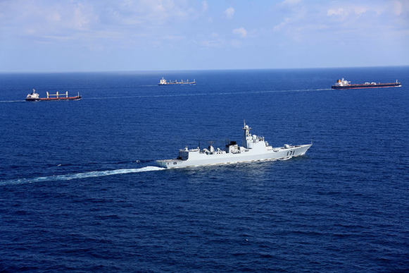 從戰(zhàn)艦起航的那一刻起,所有關(guān)于丈夫的消息都隨著母港內(nèi)尾流的消散,消失在無盡的大洋里。也從這一天起,我每天晚上7點(diǎn),都會(huì)準(zhǔn)時(shí)坐在電視機(jī)前,收看《新聞聯(lián)播》和《軍事報(bào)道》,期盼著首批護(hù)航的消息。直到現(xiàn)在,我依然清晰的記得這124天里與首批護(hù)航編隊(duì)相關(guān)的消息。