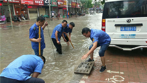 城市排澇保暢通。城管、交警等部門做好城市交通秩序和排澇工作。該縣《預(yù)案》特別對(duì)城市防汛提出詳細(xì)部署,特別是城管、交警在暴雨中從未停歇,一直在從事保暢通、疏堵排澇工作,許多市民感動(dòng)不已,并積極參與到排澇工作隊(duì)伍中來。