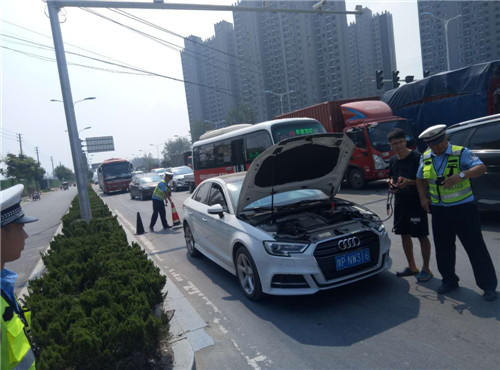 港區(qū)交警幫助私家車解除故障