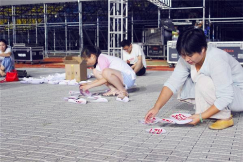 在場地的一側(cè),幾名工作人員正在全神貫注地整理一大堆號碼貼,“省運會是全省的體育盛會,能有機會參與這樣的運動會是一種榮幸,我們準確地說應(yīng)該算是志愿者,因為我們屬于義務(wù)勞動?!逼渲幸幻空f,這是細活,急不得,號碼非常多,英文中的26個字母,分大小寫,然后還和阿拉伯?dāng)?shù)字進行組合,她們的工作就是要把這些號碼捋順,防止出現(xiàn)差錯。記者注意到,場地的四周放置了很多音響,工作人員正在對播音設(shè)備進行調(diào)試,雖然還處于調(diào)試階段,但是聽起來已經(jīng)非常震撼。在場地旁邊,部分表演道具也整齊擺放著,看到這些精致的道具,開幕式當(dāng)天的文藝表演精彩程度可見一斑。