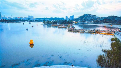 時下,漫步在鹿邑縣上清湖公園,亭臺樓榭處處皆景;朝暉、晚霞,倒映水中;夜幕下的景色更是美輪美奐。據(jù)了解,上清湖水域面積達(dá)到16.7公頃,建有親水平臺、游船碼頭、兒童沙灘、湖心島、音樂噴泉、景觀橋、觀水亭、假山等景點。踏著青石臺階或沿著假山坡道來到山頂或登臨十多米高的觀水亭,可以俯瞰整個湖區(qū),繞湖車道、步行園道、健康游道像三條紅飄帶圍繞湖區(qū),東北角的正清林里修竹清風(fēng),魅影婆娑,加之周邊林立高樓倒映水中,湖光山色美不勝收,令人流連忘返。圖①②③④為上清湖風(fēng)景。記者 李瑞才 通訊員 胡洪濤 文/圖