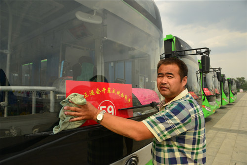 隨著省第十三屆運(yùn)動(dòng)會(huì)開(kāi)幕式臨近,近日,市公交總公司接送演職人員的公交車已經(jīng)增至近百輛,這些公交車的司機(jī)每天都要工作到午夜2時(shí)許。據(jù)悉,從今年4月份省運(yùn)會(huì)先期比賽項(xiàng)目開(kāi)賽以來(lái),市公交總公司已為省運(yùn)會(huì)出動(dòng)公交車2800臺(tái)班,中心城區(qū)公交候車亭提升改造工程也正在快速推進(jìn)中。圖為市公交二公司的劉師傅利用閑暇時(shí)間擦車。②5記者 梁照曾 攝
