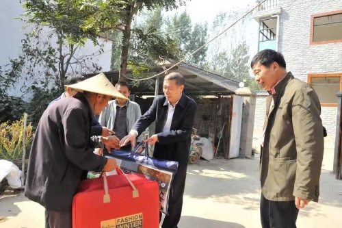 為進(jìn)一步弘揚中華民族敬老、愛老、助老的優(yōu)良傳統(tǒng)美德,讓結(jié)隊幫扶村——太康縣王集鄉(xiāng)李小橋行政村90歲及以上老人過一個溫馨又和諧的重陽佳節(jié),10月12日,周口市稅務(wù)局黨委委員、副局長徐平烽,黨委委員、總會計師李霞,黨委委員、總經(jīng)濟師張振祥等在對全村9名高齡老人進(jìn)行了走訪慰問,為老人們送上節(jié)日的祝福和價值近2000元的慰問品。