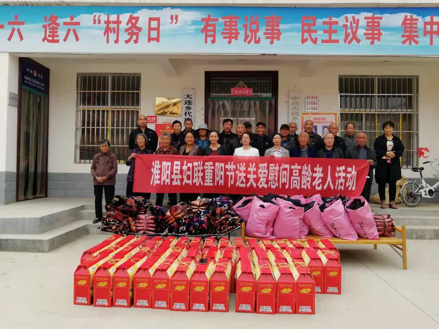 10月14日,淮陽縣婦聯(lián)駐大連鄉(xiāng)代廟行政村工作隊在代廟村開展每月農(nóng)歷逢六主題黨日系列活動。為進一步深化黨性教育活動效果,縣婦聯(lián)結(jié)合即將而至的重陽節(jié),帶領黨員對全村43戶85歲以上高齡老人進行了逐一看望慰問,為每位老人送上一套高級棉襖、棉被,一件高纖維雜糧餅和親切的節(jié)日問候,共送去價值7000元的慰問品。