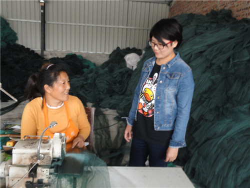 羅林林和丈夫田光輝大學畢業(yè)后返鄉(xiāng),在當地人大、工商聯和扶貧辦的幫助下創(chuàng)建了一家生產漁具的公司,為黃寨、舒莊、巴村、鄧城、張莊、白寺等12個鄉(xiāng)鎮(zhèn)的2萬多名留守婦女、留守老人和貧困群眾提供漁網編織致富門路。喬連軍 攝