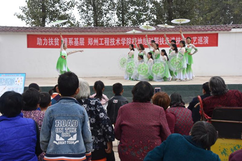 歡快的歌曲唱起來,動(dòng)人的舞蹈跳起來,熱情的掌聲響起來!10月20至21日,鄭州工程技術(shù)學(xué)院音樂舞蹈學(xué)院黨總支書記魏瑞娟帶著學(xué)院師生走進(jìn)扶溝鄉(xiāng)村,把精彩的文藝演出和普法宣傳送到群眾身邊,為脫貧攻堅(jiān)加油助力。