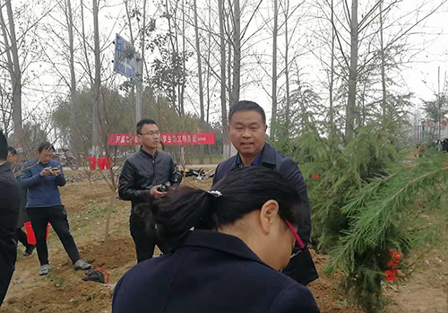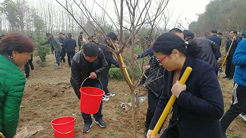 當(dāng)天下午雖然暖陽(yáng)照射,但初冬的鹿邑大地仍是涼風(fēng)習(xí)習(xí)。不過(guò)這一點(diǎn)兒也沒(méi)有影響到大家的心情。一到植樹(shù)現(xiàn)場(chǎng),梁建松、李剛等領(lǐng)導(dǎo)就和大家一起興致勃勃地拿起鐵鍬等工具忙碌起來(lái),揮鍬鏟土,扶樹(shù)填土,澆水正苗,每道工序都做得認(rèn)真細(xì)致、一絲不茍。
