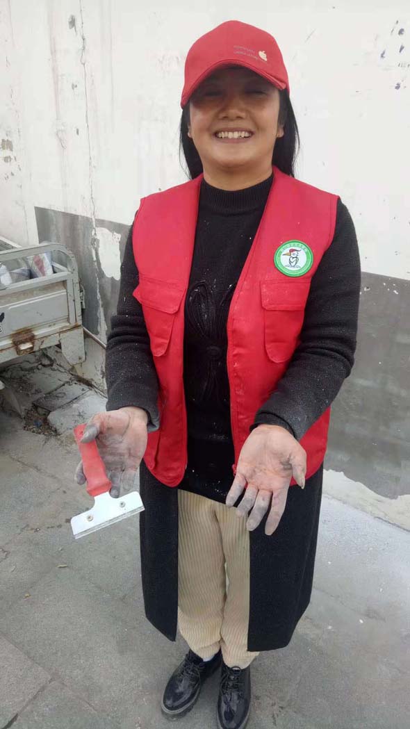 周口市啄木鳥志愿者服務(wù)工作委員會臨時黨支部書記、周口市慈孝文化促進會會長孫彩云更是不怕臟,不怕累,連個手套都不帶,直接用雙手拿著鏟刀或者抹布清理墻上的小廣告,最后弄得雙手和滿身都是污漬。“為了我們的城市更漂亮,作為一名志愿者,就應(yīng)該不怕累,不怕苦?!?/p>