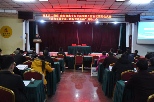 12月10日,商水縣工商聯(lián)、建行商水分行簽署全面戰(zhàn)略合作協(xié)議,共同開展“助力小微企業(yè)、踐行普惠金融”主題宣講活動??h委常委、統(tǒng)戰(zhàn)部長李遠富,縣政協(xié)副主席、工商聯(lián)主席彭發(fā)光,建行周口分行副行長邵崗等領導出席,全縣100多家中小微企業(yè)參加活動。