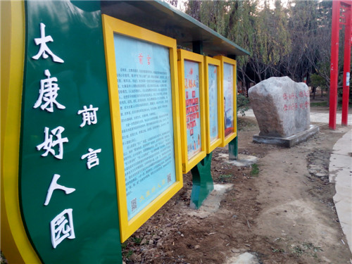 為把好人精神鐫刻在太康發(fā)展和進步的進程中,把太康建設(shè)成為好人之城、文明之城、和諧之城、美麗之城、幸福之城,從2018年9月起,太康“好人園”經(jīng)過緊鑼密鼓地籌建,如今開園迎賓。好人園緊扣“好人”主題,以道德風(fēng)尚建設(shè)為主線,在休閑公園的基礎(chǔ)上,秉承“因地制宜、因勢利導(dǎo)”的原則,堅持寓教于園、寓教于景、寓教于樂,以小處著手、局部微調(diào)的手法,通過“好人步道”“好人亭”“好人樹”“好人大舞臺”“好人精神長廊”五大版塊,將道德風(fēng)尚高地建設(shè)與公園的整體風(fēng)格和功能定位完美結(jié)合。好人園兼顧了公園本身特色與文化傳播需要,利用林蔭小道,以石、亭、牌等基礎(chǔ)設(shè)施為載體,圖文并茂地展示太康近年來獲得國家和省級表彰的道德典型、身邊榜樣的先進事跡,一步一景,隨景賦形。市民在游園過程中,潛移默化地接受“真、善、美”的教育和熏陶,激發(fā)人們見賢思齊,榜樣的引領(lǐng)作用不斷放大。