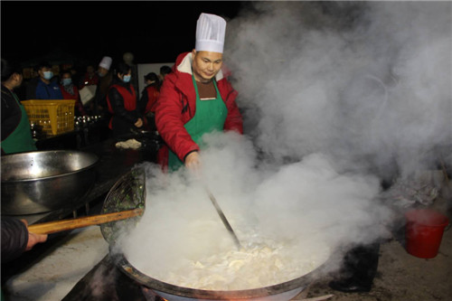 早上6點,“香噴噴餃子出鍋嘍”……隨著占鍋的志愿者大廚王偉峰的喊聲,縣統(tǒng)戰(zhàn)部副部長李忠、王天輝,縣質監(jiān)局局長王桂榮、臺辦主任馬艷勤等帶領志愿者盛水餃,一拖板放置六碗、擺在桌上、預集中端送。