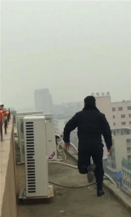 12月25日10時(shí)20分,鄲城縣公安局北關(guān)派出所接110指揮中心指令:在縣城人民路電影院十字路口西南角一棟10層樓的樓頂,一名女子要跳樓。接警后,北關(guān)派出所副所長(zhǎng)李振、民警焦騰飛和縣消防大隊(duì)消防員不顧自身危險(xiǎn),通過左右迂回、“飛檐走壁”將輕生女安全救下。