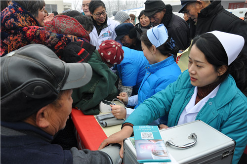 正在排隊(duì)量血壓的馬河村村民馬長運(yùn)說:“我今年70多歲,血壓有點(diǎn)高,聽說這 里有義診活動,一大早便來這里等待了。”
