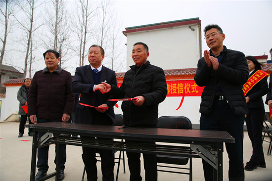 崗趙村是周口市行政服務(wù)中心幫扶的貧困村。去年11月份,駐村第一書記李文杰得知西華廈農(nóng)商村鎮(zhèn)銀行已開始在村一級(jí)評(píng)定設(shè)立“鄉(xiāng)村振興示范點(diǎn)”,立即與該行負(fù)責(zé)人取得聯(lián)系、積極溝通。銀行方面經(jīng)過認(rèn)真考察,最終確定在崗趙“設(shè)點(diǎn)”。25日在崗趙村部舉行的授牌授信儀式上,西華縣人民銀行有關(guān)負(fù)責(zé)人為崗趙村授予“鄉(xiāng)村振興示范點(diǎn)”牌匾,西華廈農(nóng)商村鎮(zhèn)銀行負(fù)責(zé)人與崗趙村負(fù)責(zé)人簽訂了授信協(xié)議書。周口市行政服務(wù)中心和葉埠口鄉(xiāng)政府負(fù)責(zé)人都熱情致辭,百余名村民代表見證了這一激動(dòng)人心的時(shí)刻。準(zhǔn)備做早餐生意的村民趙合成說:“咱農(nóng)民貸款也不用再跑冤枉路、花冤枉錢,這個(gè)‘點(diǎn)’設(shè)得真中!”