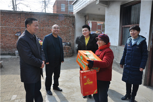 當(dāng)日上午,愛心企業(yè)商水建業(yè)為500個(gè)家庭送來了米面油等過年物質(zhì),河南省越調(diào)劇團(tuán)為農(nóng)民帶來精彩的戲曲演出,剛剛參加全省“紅色文藝輕騎兵”慰問演出回到周口的申小梅女士為村民表演了群眾耳熟能詳?shù)摹妒战獋ァ愤x段。