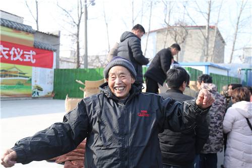 此次捐贈,共捐獻400多套棉襖。穿上嶄新的棉衣,87歲的李如意笑得合不攏嘴,他穿上新棉襖在廣場前轉(zhuǎn)了好幾圈,高興得像個等待過年的孩子。