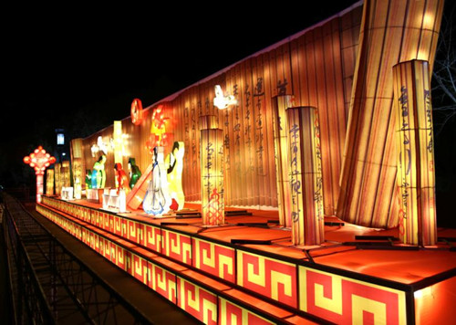 主題燈會老子布道、孔子問禮、武則天祭祖等造型與老子故里、人文鹿邑相得益彰,卡通肥豬為游客獻上一場憨厚的可愛形象,太極殿前日月潭內(nèi)青煙渺渺,在燈光的變化下讓人仿佛步入仙境,各個角落的樹木花草彩光熠熠,整個太清宮內(nèi)是光的海洋……