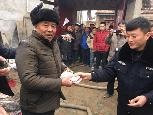 2月17日下午3時許,鄲城縣南豐鎮(zhèn)徐寨行政村徐大莊一村民使用地鍋后忘記滅火發(fā)生火災,鄲城縣公安局一村一警張振偉冒險進入火中,幫助轉移出1萬元現金和重要證件。