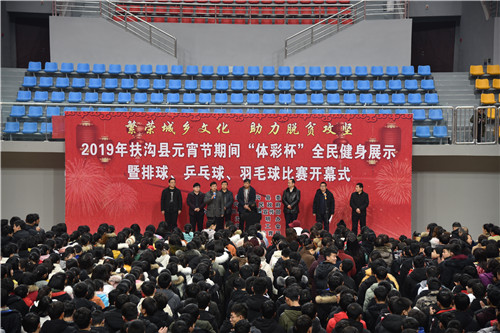 2月17日上午,元宵佳節(jié)即將來臨之際,在全縣脫貧攻堅(jiān)沖刺的關(guān)鍵時(shí)期,扶溝縣2019年元宵節(jié)“體彩杯”全民健身展示暨排球、乒乓球、羽毛球比賽活動(dòng)在縣體育館隆重開幕?;顒?dòng)旨在豐富全縣廣大人民群眾的文化生活,助力脫貧攻堅(jiān),為實(shí)現(xiàn)“五個(gè)扶溝”增光添彩??h委常委、宣傳部長馬昭才,副縣長吳興華等出席開幕式??h委宣傳部副部長張根主持開幕式。