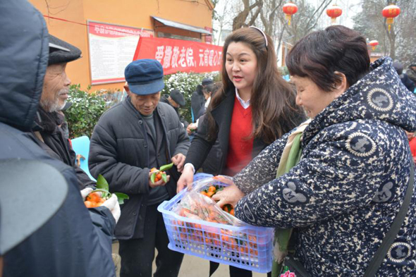 據(jù)了解,此次開展“愛灑敬老院、元宵暖心田”公益活動的發(fā)起人,是剛剛獲得商水縣“道德模范”的愛心人士劉玉英。劉玉英是一名中共黨員,她早年外出務(wù)工,近幾年返鄉(xiāng)后任職某保險(xiǎn)公司。經(jīng)常關(guān)愛留守兒童和老人、對親戚鄰居慷慨相助,她還加入了“周口義工”團(tuán)隊(duì),踴躍參加當(dāng)?shù)亍笆∵\(yùn)會”“殘運(yùn)會”義務(wù)服務(wù)活動?!耙粋€(gè)人的愛心是有限的,這次自愿報(bào)名參加人員都是愛心企業(yè)家,盡管他們工作都很忙,一聽說要去敬老院給老人送元宵都親自來了?!眲⒂裼⒔榻B說,“我們帶來了精心挑選的6件黑芝麻水果元宵、4件蘋果、4件砂糖橘、2件柚子、4件香蕉、2件雪梨,還有市區(qū)‘亨達(dá)果品’水果店老板獻(xiàn)愛心捐贈的一箱西瓜,盡管這些東西價(jià)值只有1000多元,但畢竟是大家的一片心意!”