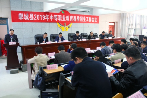 3月19日,鄲城縣2019年中等職業(yè)教育春季招生工作會(huì)議召開。縣教體局局長(zhǎng)劉現(xiàn)營(yíng)主持會(huì)議并講話,副局長(zhǎng)劉士領(lǐng),政府督學(xué)陶永昌,黨組成員馬力彬、張衛(wèi)華、魏宏出席會(huì)議。