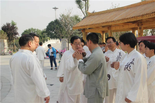 在李廣的示范帶動(dòng)下,縣財(cái)政局先后又有10多人加入其中,形成了一個(gè)龐大的太極拳義務(wù)傳授團(tuán)隊(duì)。幾年來,李廣團(tuán)隊(duì)每天早晚堅(jiān)持頭頂著晨曦、沐浴著夕陽,義務(wù)傳授太極拳,弘揚(yáng)傳播老子文化,乘借著鹿邑既定的“產(chǎn)業(yè)興城、文化立縣”發(fā)展戰(zhàn)略東風(fēng),持續(xù)為唱響“老子故里、道家之源、道教祖庭、李姓之根”四大文化品牌添磚加瓦、吶喊助威。