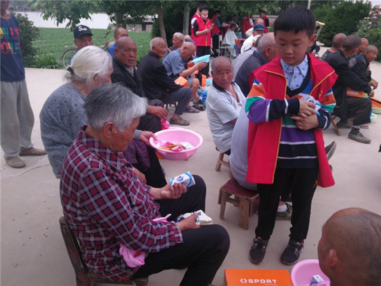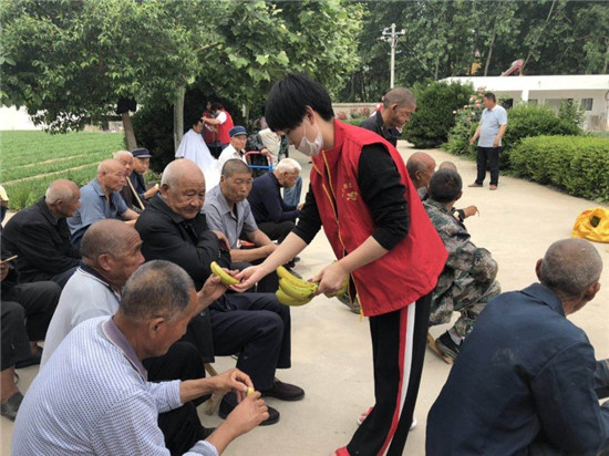 當(dāng)天上午,周口助夢公益團(tuán)20余名志愿者來到西華縣大王莊鄉(xiāng)中心敬老院,為37名老人帶來了自發(fā)捐款購買的鞋子、毛巾、襪子、香皂、臉盆、香蕉、西瓜等價值近2000元的愛心物資。